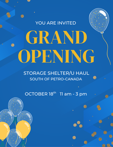 Back to News Listing STORAGE SHELTER/U HAUL GRAND OPENING October 14 2025 GRAND OPENINGĀ OCTOBER 18th 11AM - 3PM Prev